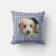 Dog Pet Personalized Photo Name Blue Plaid Throw Pillow