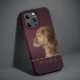 Dog Pet Photo Golden Retriever Personalized Name iPhone 14 Pro Smart Phone Cases features features your favorite pet or dog photo with your personalized name in golden script typography on a deep burgundy red background. Perfect gift for Christmas, birthday, holidays, Mother's Day, Father's Day, dog and pet lovers. Designed by ©Evco Studio www.zazzle.com/store/evcostudio