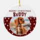 Dog Pet Photo Merry Christmas Red Star Pattern Ceramic Ornament