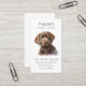 Whimsical unique dog walker pet sitter watercolor dog business card with a description of fun things to do with dogs.