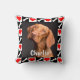 Make your own custom throw pillow with your own picture of your dog or puppy! Just click to personalize the template and change the placeholder dog photo out for your own. Then type your dog's name in the custom text box, or delete the text and leave it blank if you one what a dog photo pillow. Featuring a unique black and white checkered pattern with dog bones on the black squares, and bright red hearts on the white squares. Makes a fantastic gift idea for any dog lover. Perfect for celebrating a new puppy dog member of the family, or as a dog memorial gift.