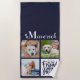 Dog Photo Collage Personalized Monogram Navy Blue Beach Towel