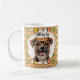 Your dog in a framed photo on a coffee mug full of hearts in manly colors.