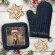 Dog Photo Personalized Modern Rustic Holiday Plaid Oven Mitt & Pot Holder Set