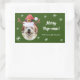 This festive Christmas gift sticker is perfect for all the dog lovers in your life! Featuring an adorable photo of a dog wearing a Santa and reindeer antler hat against a green background, this fun sticker is sure to bring a smile to everyone's face. The photo may be changed to a photo of your own pup or the pup of your recipient! The background has pretty white snowflakes and editable text that says Merry Pup-mus. Under the greeting text, add your family name or other text.