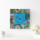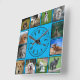 Dog Photos Collage on Blue Background Square Wall Clock