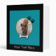 This fun binder features a red square frame with a circular cutout to display your pet dogs photograph. It features paw prints and a bone to make this really doggie festive. The spine and back are black. There is a place for a name or message on the spine and the front cover.