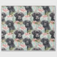 Black Labrador puppy gift wrap for the dog lover's Christmas holiday or gift giving - black lab puppies with pale blue presents and pink bows, a sprig of pine needles and snowflakes for a holiday theme - in a modern pastel color theme - the design is approx 6 inches, so best for larger packages -