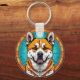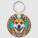 Dog Portrait with Mosaic-Inspired Background Keychain