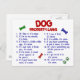 Only a dog owner would create this card because only a dog owner would have this experience. Post cards are a bit small in size but card stock is good. Colors are clear and script type is easy to read. I sent this to my aunt who has a dog and to two other friends who also have dogs and they thought the postcard was funny. Everyone said it brightened their day.