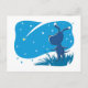 This cute whimsical cartoony Postcard designed in the blue tones features cute stargazing Puppy. Little funny Dog stands on the top of the hill watching starlit sky and meteor shower. Shooting star crosses the blue night sky. Ideal postcard for stargazers and dog lovers.