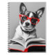 Black and White Picture of a dog Reading a read with a color splash of red glass frame a book cover