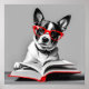 Black and White Picture of a dog Reading a read with a color splash of red glass frame a book cover