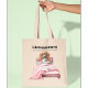 This is a design for book lovers, this book bag features a dog reading in bed, he is a librocubicularist, which is the term to describe someone who likes to read in bed.