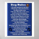 Dog Rules - Poster 1. The dog is not allowed in the house. 2. Ok, the dog is allowed in the house, but only in certain rooms. 3. The dog is allowed in certain rooms, but has to stay off the furniture. 4. The dog can only get on old furniture. 5. Fine, the dog is allowed on all of the furniture, but is not allowed to sleep in the beds with the humans. 6. Ok, the dog is allowed on the bed, but only by invitation. 7. The dog can sleep on the bed whenever he wants, but not under the covers. 8. Fine, the dog can sleep under the covers by invitation only. 9. The dog can sleep under the covers every night. 10. Humans must ask permission to sleep under the covers with the dog.