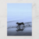 A Photograph of a dog running backwards and forwards on beach at sunset.