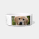 Dog`s Name in Black Script 2 Photos Bowl. This dog bowl comes with a dog`s name in black script and 2 photos - personalize the bowl with your dog`s name and insert two of your photos into the template.