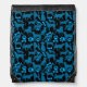 Dog silhouette Pattern.Blue.04 Black BG Drawstring Bag