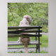 Dog sitting on park bench poster
