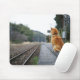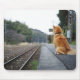 Dog sitting on train station mouse pad