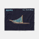 Stay warm and let 'em know what you do for fun during winter. A dog sled with a teal sled bag superimposed on a starry background. Text reading, "Alaska" appears in glowing blue and white - you may easily remove this if desired. You may add your own additional text on both the sled bag and at top right. Feel free to ask me if you need assistance.