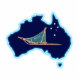 A dog sled with a teal sled bag and the Southern Cross superimposed on a blue map of Australia.. You may add a bit of text on the sled bag.