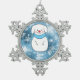 Dog Snowman with Blue Snowflake Bokeh Background Snowflake Pewter Christmas Ornament