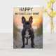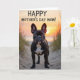 Designed with a small, sturdy dog at center stage, the front shows it facing you with an attentive gaze that feels like a loyal friend’s quiet devotion ❤️. Its dark coat catches the light, and a bright white patch on its chest draws your eye up toward its upright, bat-like ears. The dog stands on a gently rippled sandy path, with thin green dune grass rising on both sides like a soft frame. Behind it, a golden-hour sky fades from warm orange to peach and pale gold, setting a calm, affectionate mood like a shared evening walk. A smooth stretch of water sits low on the horizon, adding a peaceful coastal backdrop. Across the upper area, dark lettering reads “HAPPY MOTHER’S DAY MOM!” and stands out clearly against the light sky 🌼. The warm glow highlights the sand’s texture and the dog’s face, while the grasses appear as slender green strokes along the foreground edges.