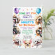 Dog Invitation Birthday Party Invites. For boy or girl. Cute happy, smiling puppy illustration invitation designed with confetti and balloons surrounded by popular small dog breeds such as, shih tzu, pug, maltese, chihuahua, poodle, and beagle. All editable text with the child's name, age, time of the party, address, and RSVP.