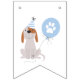 Fun and cute party bunting flag decor for your child's puppy dog theme birthday party. Illustration of a dog with blue party hat and balloon. The wording says "Happy Birthday". Great for a boy's birthday party.