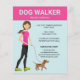 Spread the word about your dog walking business with the help of this Destei design featuring a cute woman with brown long hair. The woman is wearing a pink T-shirt, black leggings and green color sneakers. She is holding a red dog leash as she walks a cute small brown dog. The top has a pink background color behind the title area while the rest of the design has a very light blue background color. Personalize the sample text areas with the details of your business.