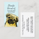 Pet Sitter Dog Walker Business Card. With a drawing of a pug puppy. This business card will be perfect for Dog walker, Pet Groomer, Pet Care, Pet Sitter business All text style, colors, sizes can be modified to fit your needs