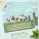 A pet care services flyer. Perfect for a dog walker, boarder, dog sitter or doggie day care. The design consists of an illustration of five funny dogs running a race through a field with blue sky and clouds. Personalise by adding your contact details.