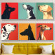 This set of dog illustrations feature one German Shepherd, one Doberman Pinscher, one Greyhound, one Dalmatian, and one Labrador Retriever.