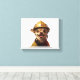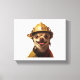 Dog wearing a red fireman helmet design canvas print