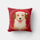 Dog Wearing a Santa Hat with Snowflake Frame Throw Pillow