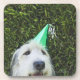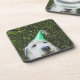 Dog wearing party hat drink coaster