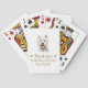 These adorable bichon frise wedding favor playing cards are the perfect way to show your guests you appreciate them. Includes a watercolor Goldendoodle graphic as well as the saying "Thank you for celebrating my humans, love bisquit" in pretty gold font.