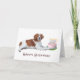 A dog holds a birthday cake covered in lit candles on this fun birthday card.