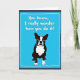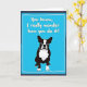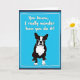 At the center of the card is a stylized portrait of a small, short-snouted pet dog in black and white, sitting upright with wide, expressive eyes that feel like they’re meeting someone’s gaze with gentle affection ❤️. A bright white blaze runs down its face and spreads across its chest, sharply contrasting the dark fur and drawing attention to its tender, attentive look. The pointed ears stand alert, as if it’s listening closely to a loved one nearby. Behind the dog sits an electric-blue rectangular panel, bordered by a loosely drawn white outline that gives the scene a cozy, intimate touch. A deeper indigo outer frame surrounds everything, with small hints of red and orange peeking near the edges for extra warmth. Near the top, the phrase “You know, I really wonder how you do it!” appears in white, flowing lettering, centered above the dog like a fond, admiring note 🌼. A faint light outline around the dog creates a soft glow against the blue panel.
