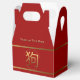 Golden Dog Symbol with an embossed digital effect on red gable favor box with greeting in Chinese. You can easily change background color and add text by clicking the customize button. Matching cufflinks, keychain, button, greeting card and more... Perfect for Chinese New Year of The Dog 2018 or Birthday (people born in Dog year). ---- "The Dog (狗) is one of the 12-year cycle of animals which appear in the Chinese zodiac related to the Chinese calendar. The Year of the Dog is associated with the Earthly Branch symbol 戌. The character 狗 refers to the actual animal while 戌 refers to the zodiac animal. (...) People born within these date ranges can be said to have been born in the "Year of the Dog", while also bearing the following elemental sign:
