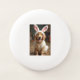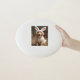 Fun white frisbee with picture of a golden retriever dog dressed as a bunny rabbit