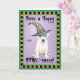 Send Halloween greetings with this card of a cute Dogo Argentino wearing a green mask and witch hat decorated with a silly spider. Great for kids of all ages who love Dogos and Halloween. Have a Happy HOWL-oween!