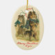 This Christmas ornaments features a lovely vintage Christmas image of a pair of Collie dogs playing bagpipes. The caption reads, "A Merry Christmas to You". Obviously for Scottish dog lovers! Lovely oval Christmas ornament that is ready to hang.