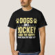 Hockey theme T-shirt with text that reads Dogs and Hockey Make Me Happy Humans Make My Head Hurt! Also features some hockey sticks and dog paw prints!