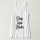 A cute top for dog lovers! This design features a black script font "Dogs before dudes"