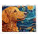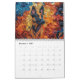 This calendar features colorful illustrations of different breeds of dogs in paper quilling art style.