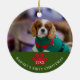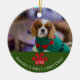 Cute ornament to celebrate your dog's first Christmas. Personalize it with your favorite picture and your pet's name. This is also great as Christmas gift. Personalize with the year too. The photo is displayed on both front and back.
