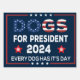 Show your support for the furry friends with our 'Dogs for President 2024' Yard Sign. This light-hearted political sign humorously suggests that our canine companions might make better leaders. Make a statement about the 2024 election with a touch of humor