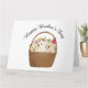 A Mother's Day card featuring an illustration of three adorable Golden Retriever puppies sitting in a flower basket surrounded by beautiful flowers. The design creates a warm and loving atmosphere, evoking feelings of tenderness and affection. The pure and innocent puppies enhance the family-like ambiance, making this card a perfect choice for Mother's Day. It is especially recommended for those who love dogs, adding an extra touch of joy and charm.